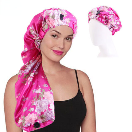 Bonnet de nuit en satin imprimé à bords larges et élastiques